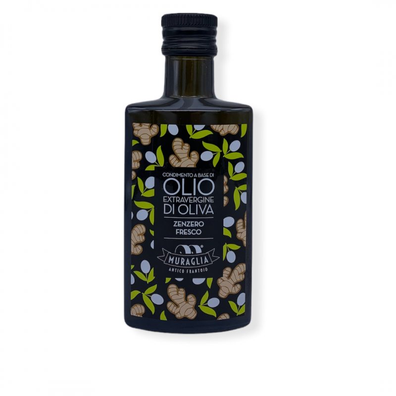 Aromatic oils: Seasoning based on extra virgin olive oil. These Aromatic Oils are synonymous with Excellence and fusion. Lemon, Bergamot, Chilli, Basil, Garlic and Ginger are the four taste variations that enliven and fuse Frantoio Muraglia’s extra virgin olive oil. Four aromatic bouquets in which all ingredients are revered and celebrated. The Rocca Imperiale IGP lemonis perfect with fish dishes, Celery produced in Puglia and Ginger can be paired with crudités, salads and legume soups, while Calabrian Chillies enrich pizzas and give life to the alchemy of the delicate yet pronounced taste.